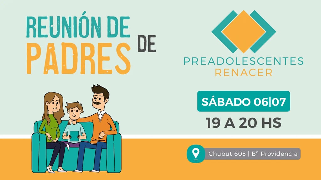 El próximo sÔbado 6 de Julio a las 19 hs, te invitamos a una Reunión de Padres de Preadolescentes.
